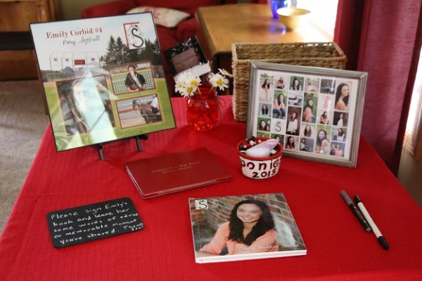SIGN-IN BOOK (pictured above): This was a book of senior pics and other pics from childhood with LOTS of white space for friends and family to write well wishes and memories. This is a keepsake she will have for life and can look back at when life gets tough. This girl is loved by many and it showed in this book.