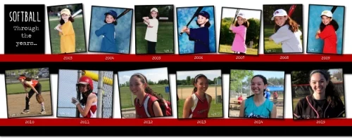 I'm a sucker for pic displays that watch kids grow up before your eyes. Once I realized I had pics from each year she played softball (since Kindergarten), I couldn't resist. This was done poster size.
